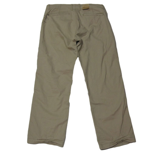 少し緩めのリラックスフィットでリアルなビンテージ感が特徴的なアイテム。ポケットのさり気ないプレートロゴやバック部分のステンシルプリントが雰囲気をアップさせておりお洒落にまとまったオススメのチノパンツ。フトントにはコインポケットもあります。サイズはW33×32のみの入荷!気になる方はお早めに!