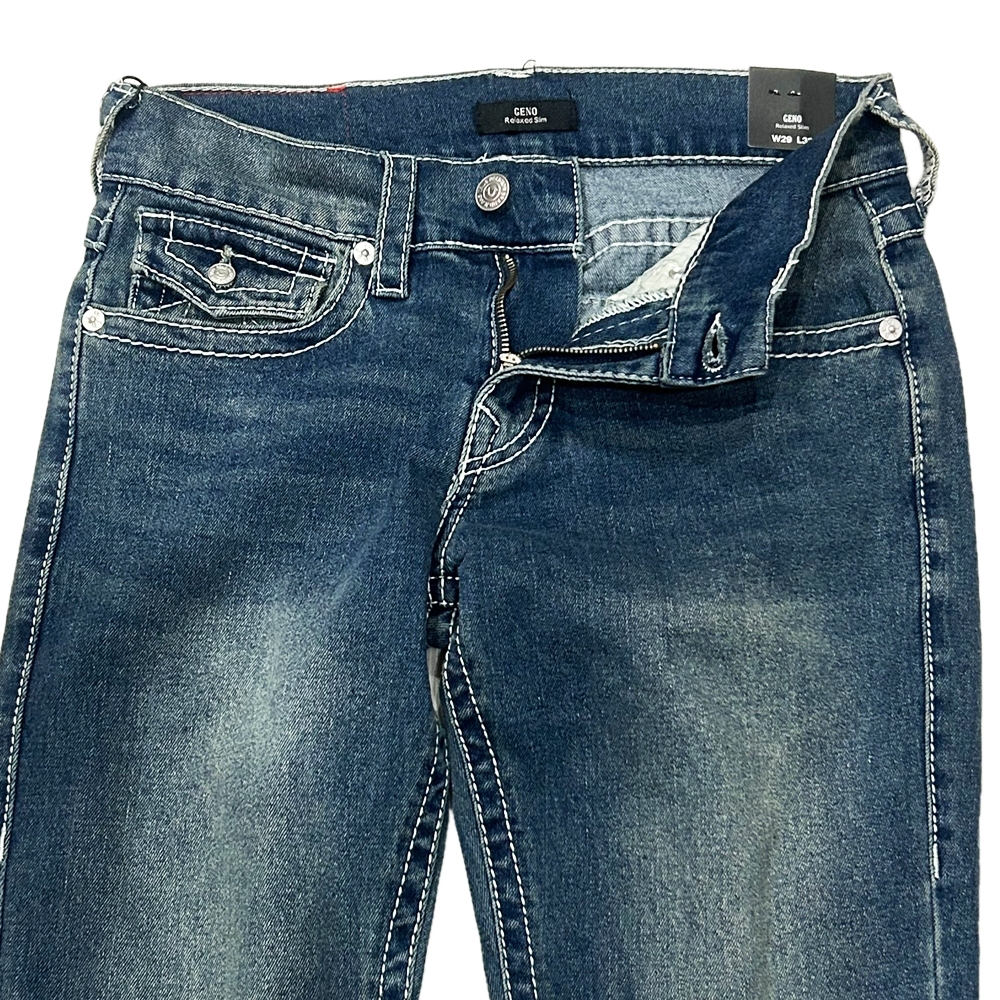TRUE RELIGIONからGENO BIG FLAP RELAXED SLIM DENIM PANTSを入荷しました。GENO(ジェノ)モデルから絶妙な色落ち加減とホワイトスティッチ映える一本が到着。RELAXED SLIMであり程よくストレッチがきいており腰周りや太ももには適度なゆとりを持たせながら膝から裾に向かってテーパードしていく洗練されたスリムシルエット。バックにはブランドを象徴する馬蹄ロゴ(ホースシュー) ステッチにフラップポケットと存在感抜群のデザイン。フロントはジッパーフライ/ボタンウェストクロージャになっておりサイドポケットにもお馴染みのアイコンのステッチもポイント。コットン地に伸縮性のある生地の混合地は着心地も良く適度なストレッチがアシスト。是非この機会にゲットしてみてはいかがでしょうか?