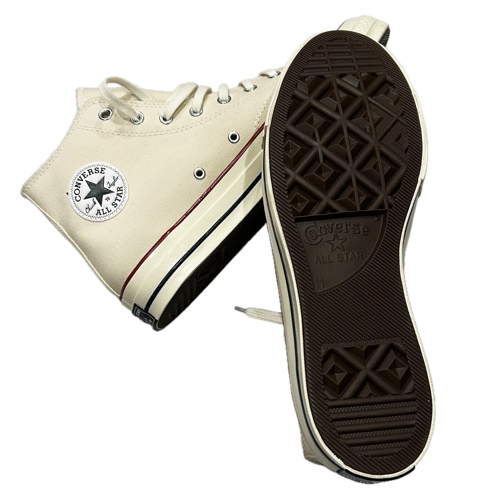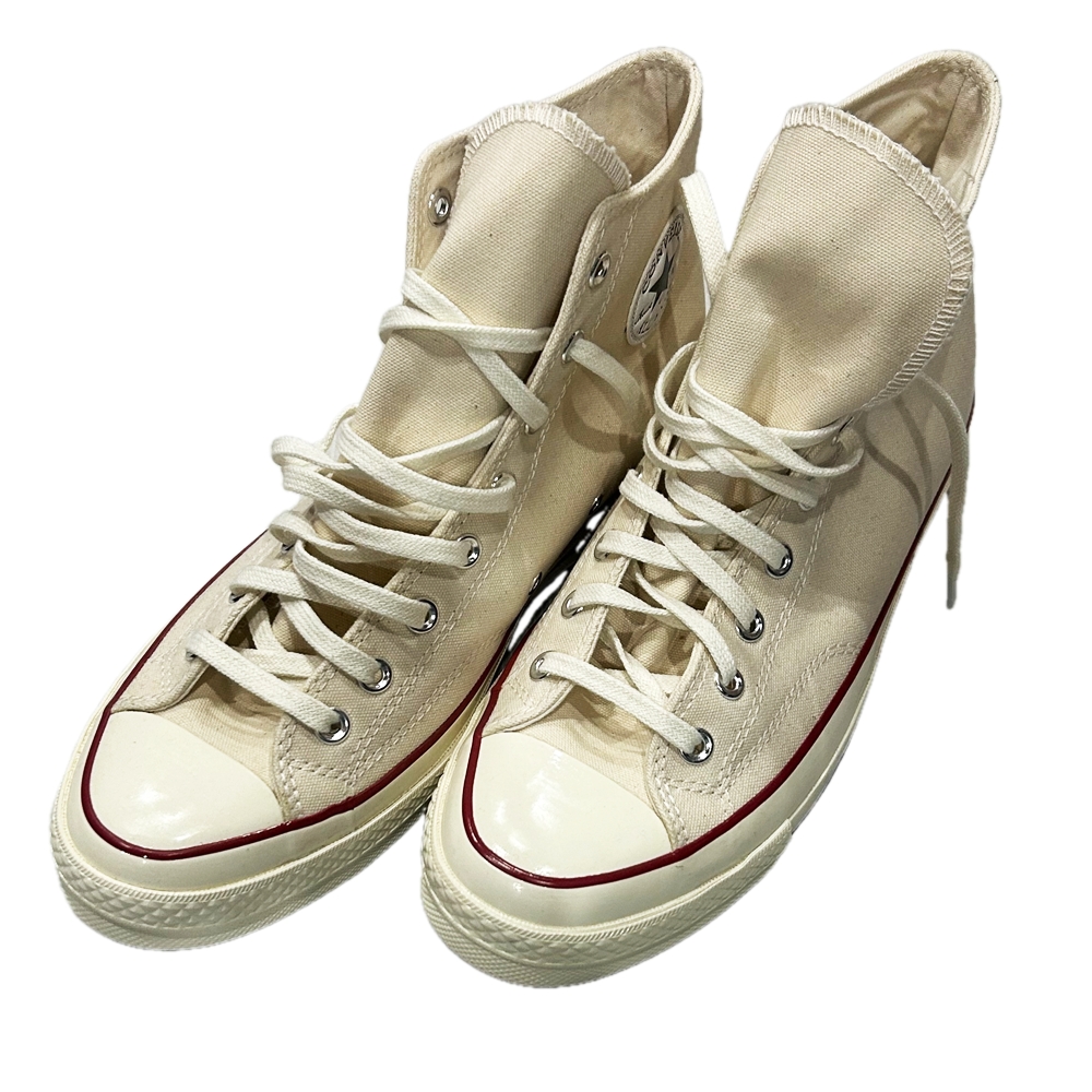 CONVERSEから日本未展開モデルのCHUCK TAYLOR 1970s CT 70 HI WHITE US 11を入荷しました。3つ星と呼ばれる星が3つ描かれたブラックのヒールパッチは勿論のことヴィンテージコンバース特有の肉厚なキャンバス地。70’s特有のサイドステッチ。厚めのソール/つま先のラバー部分の面積の小ささなど当時の面影そのままにヴィンテージ感溢れるアイテムになっております。CONVERSE USAはNIKE社の傘下でありインソールも驚く程クッション性が改良されており履き心地は抜群。HI CUTモデルですのでパンツをロールアップし足元を強調するスタイルにもオススメ。忠実に再現されたディテールはヴィンテージラヴァーの心をくすぐる一品に仕上がっています。いかがでしょうか?